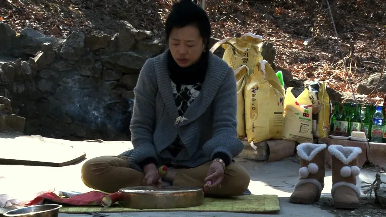 During a three-month stay in South Korea, Natacha Nisic collects documentary film material on shamanic practices. The artist meets a shaman who watches over a sacred place at a spring on an island 50 km from Seoul. On the occasion of a visit by a young woman seeking advice, the shaman talks about the adversities of her vocation, about the difficulty of finding a place between tradition, spirituality and charlatanism, but also about the hardships of daily life.